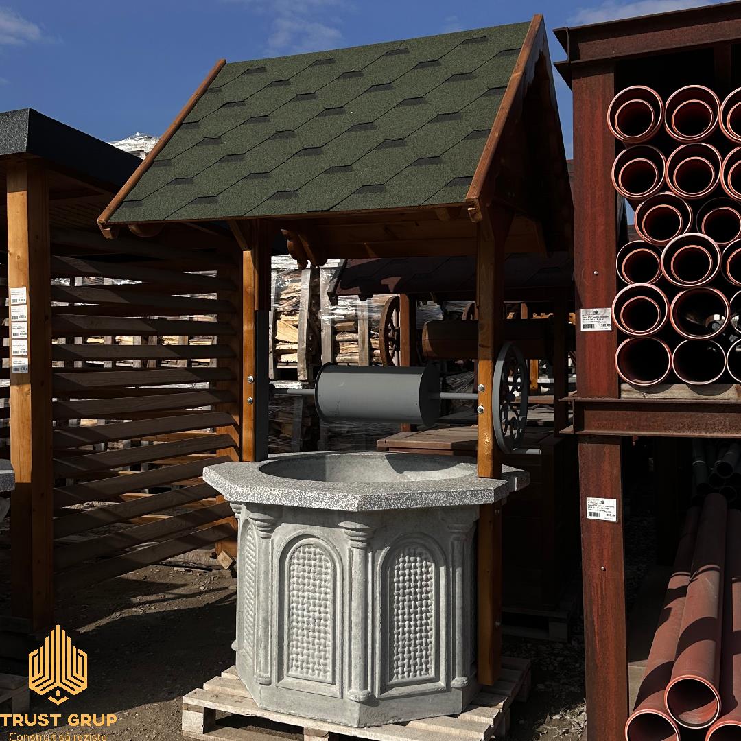 Trust Grup vă pune la dispoziție Fântână de beton cu acoperiș din lemn (decor). Garantăm calitate superioară, colaborare fructuoasă și prețuri accesibile.