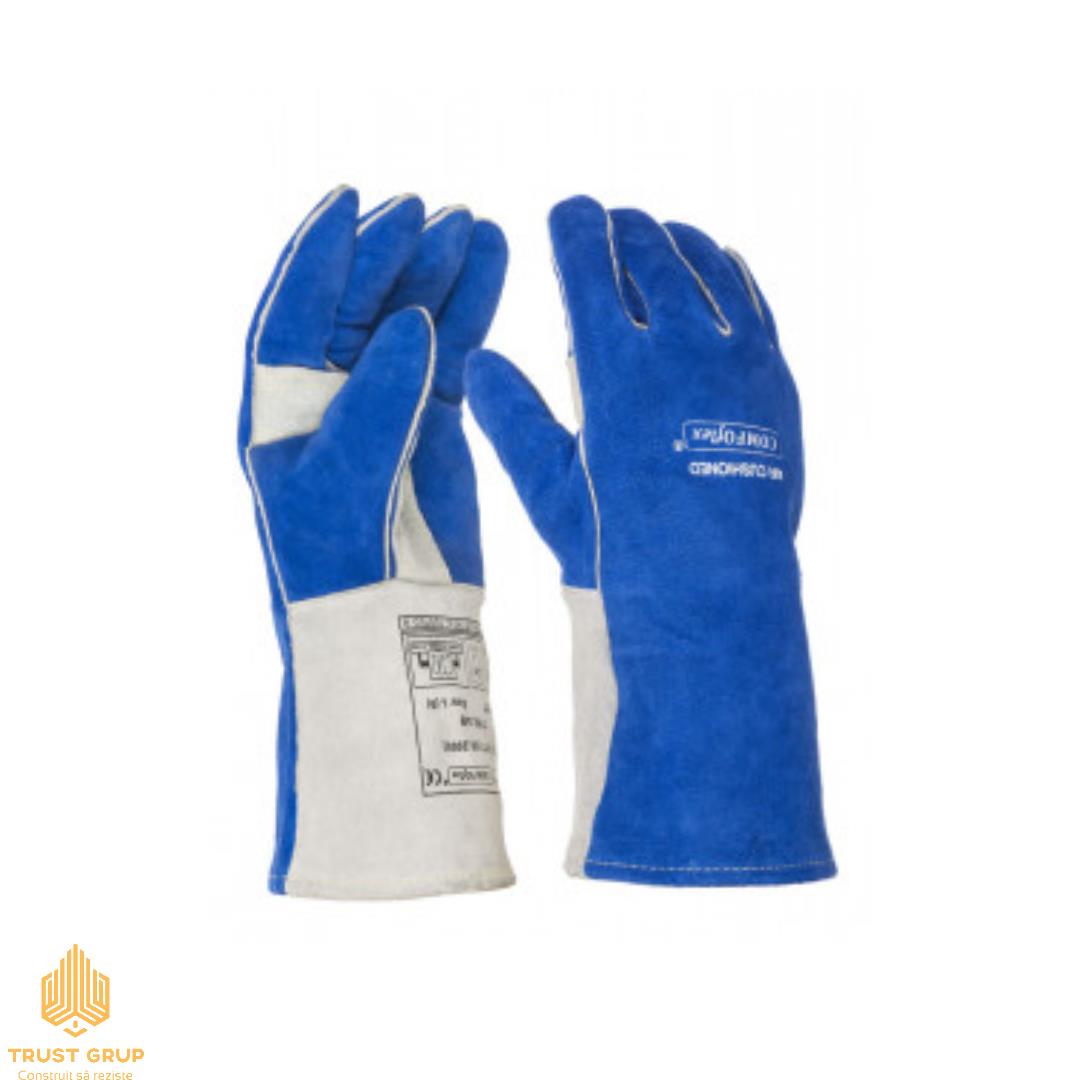 Mănuși pentru sudură din piele albastre cu alb