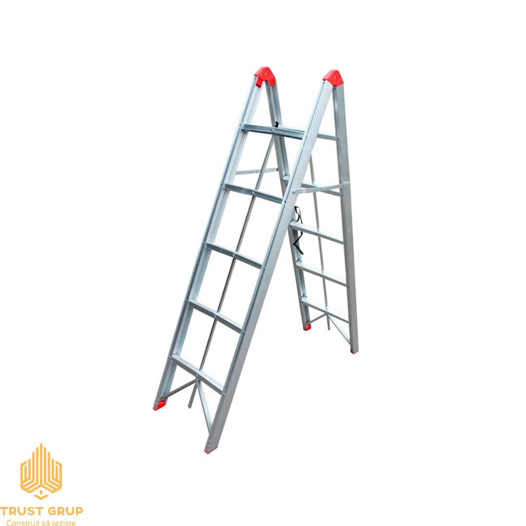 Scară pliabilă dublă din aluminiu 5 trepte BAU WELT