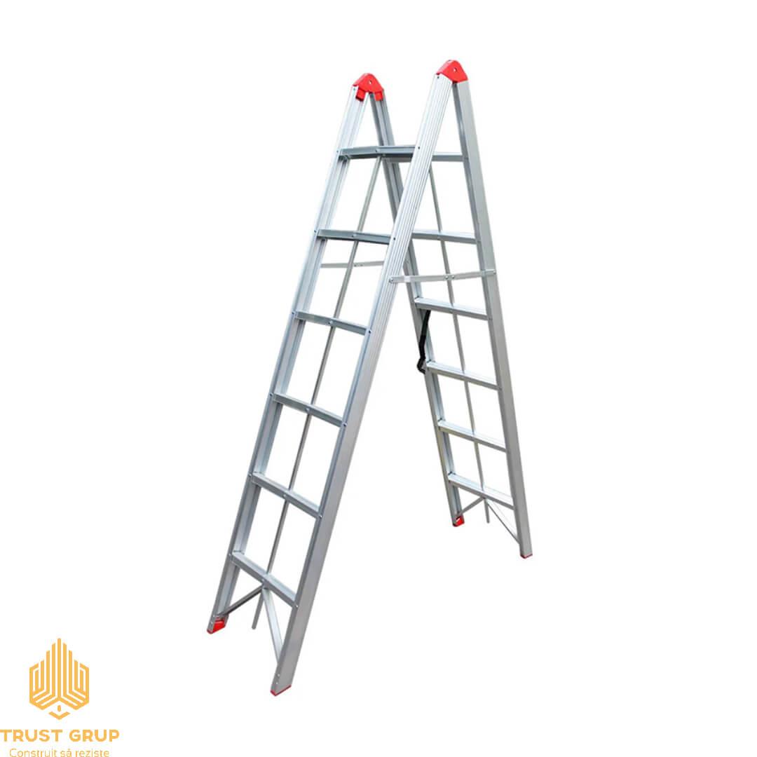 Scară pliabilă dublă din aluminiu 6 trepte BAU WELT